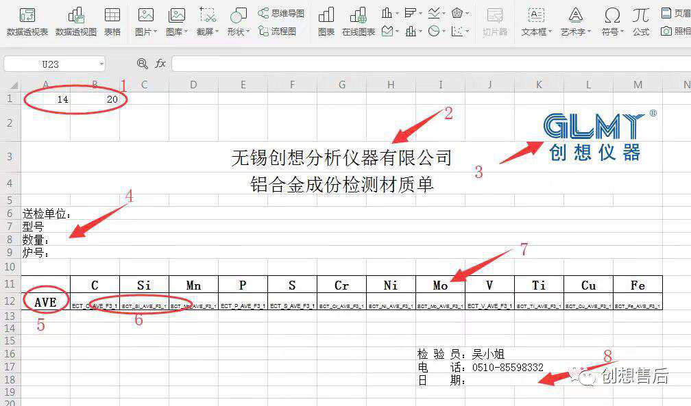 7.显示的元素一般为C、Si、Mn、P、S,根据软件界面的实际元素对应修改,如图: