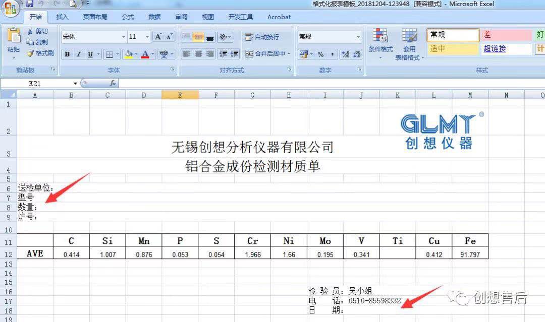 另外送检单位及检验员、日期等需要根据实际情况打印报表后单独用笔填写