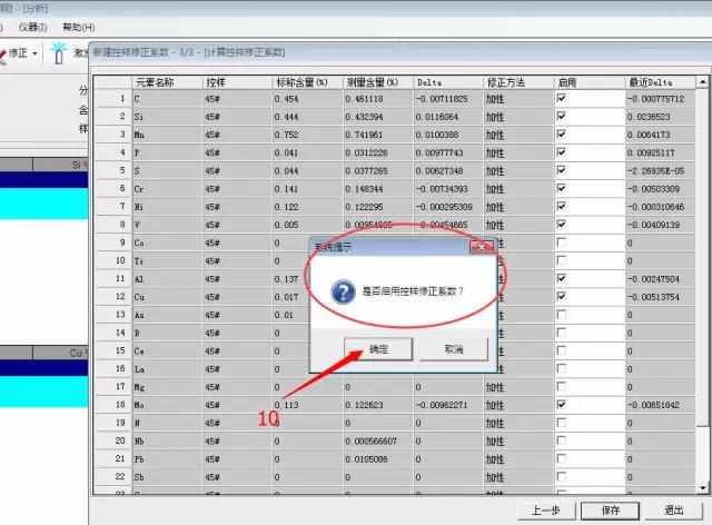 单击“确定”启用控样修正系数完成控样修正